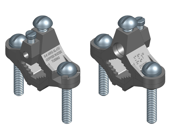 Used to connect bare or armored copper wire to steel water pipe Standard hardware is zinc plated steel Integral clamp securely holds armor